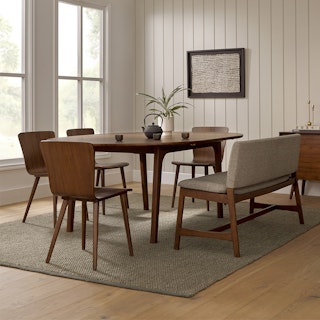 Take a seat on the Nosh for some grade-A 'noshing,' as in 'sitting comfy' — that's right, we're co-opting the verb. Designed with tapered legs, soft textured upholstery, and solid wood construction, this bench is MCM-inspired design at its best.