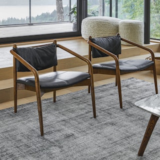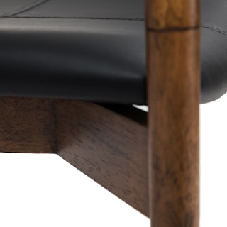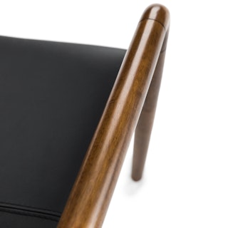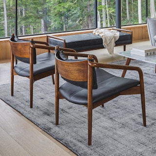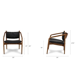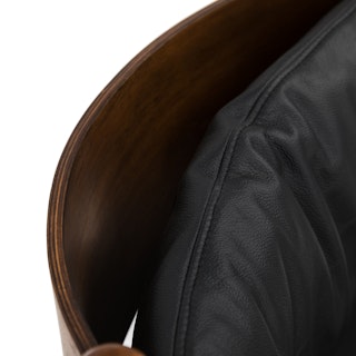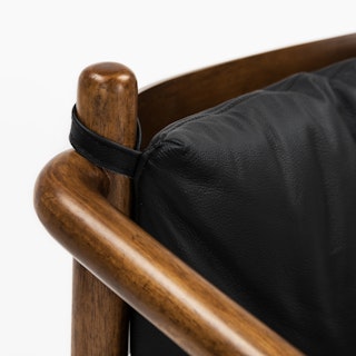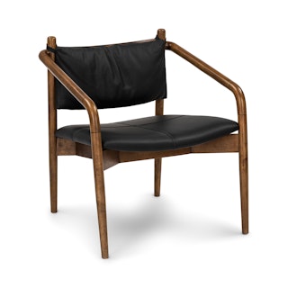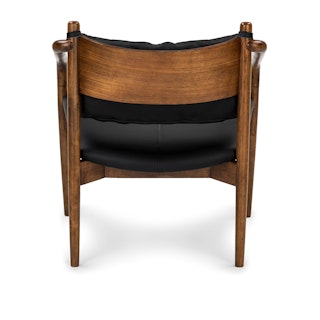 This chair looks like a musician that aged really, really well. The Lento black leather lounge chair is made from solid, walnut-stained wood frame. This black leather lounge chair is equal parts functional and sexy: its comfortable foam-padded seat and durable buffalo leather upholstery makes this perfect for leaning into a boisterous conversation, or for quietly contemplating your next move.