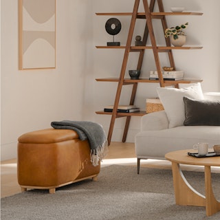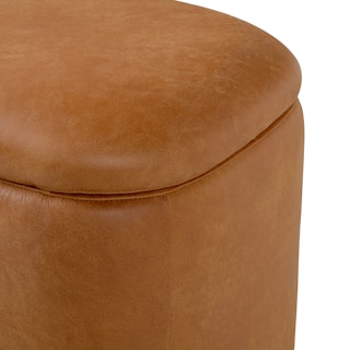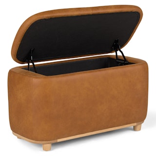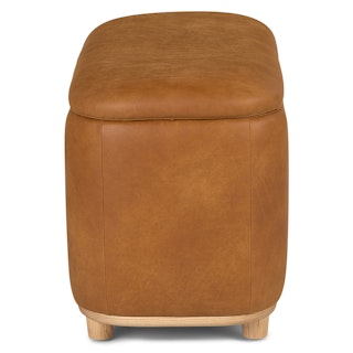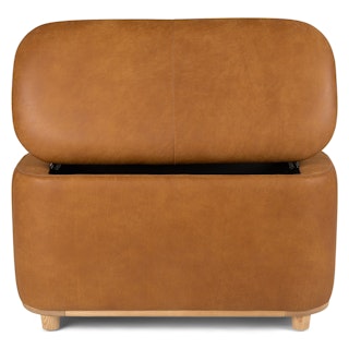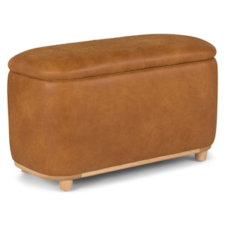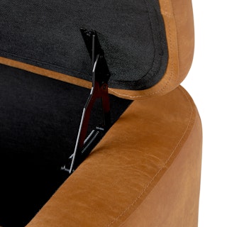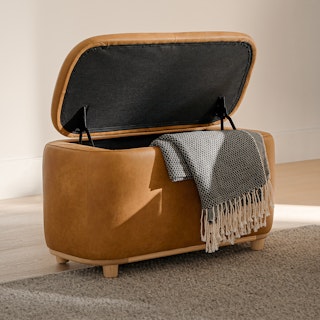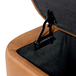 Holds your feet and your stuff. With its soft-close lid and ample storage space, the Maribo Ottoman is a stylish double-threat. Its soft, suede-like leather upholstery doesn't hurt either.