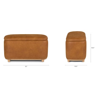Maribo 32" Leather Storage Ottoman - Rawhide Tan