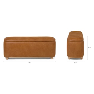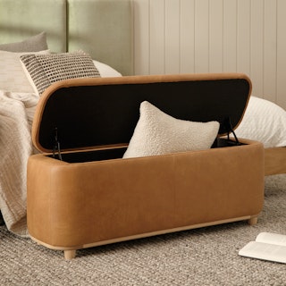 Shop Similar Available ItemsHolds your feet and your stuff. With its soft-close lid and ample storage space, the Maribo Ottoman is a stylish double-threat. Its soft, suede-like leather upholstery doesn't hurt either.