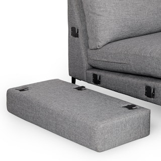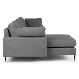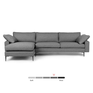 The Nova is a study in harmonious opposites: a deep, cozy sofa set atop dainty legs. Sharp angles, soft pillows. A commanding presence, but with a chaise that can be attached to either side, also very flexible.