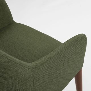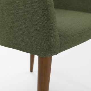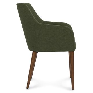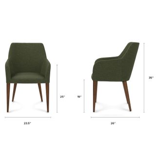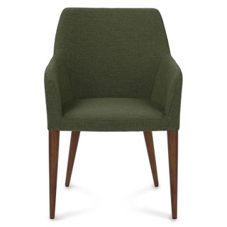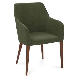 Eat your heart out. The upholstered Feast chair features slender arms and tapered walnut legs for those luxuriously long and comfortable dinners with friends. Generously proportioned, this chair is great for the home.