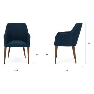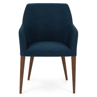 Eat your heart out. The upholstered Feast chair features slender arms and tapered walnut legs for those luxuriously long and comfortable dinners with friends. Generously proportioned, this chair is great for the home.