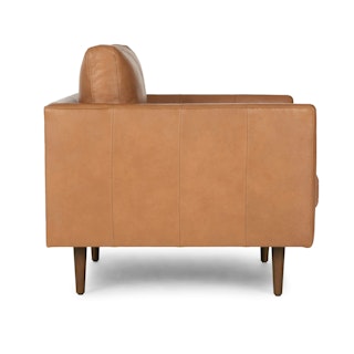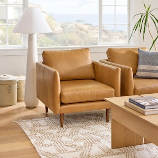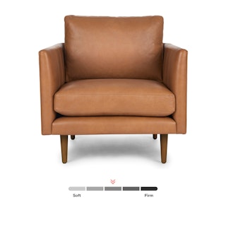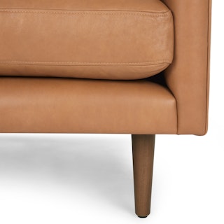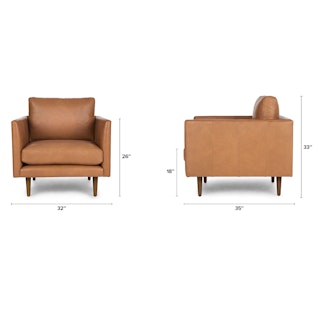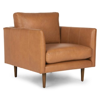 The Burrard chair features sumptuous leather, strong lines, and sinkable cushions. Details such as double-stitched seams, hand-folded corners, and waxed Italian-tanned leather speak to quality construction, while slender wooden legs offer stability without adding bulk. Sit back with a strong drink and a good book, and reflect on your accomplishments — such as your good taste.