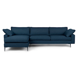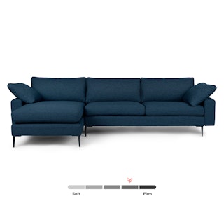 The Nova is a study in harmonious opposites: a deep, cozy sofa set atop dainty legs. Sharp angles, soft pillows. A commanding presence, but with a chaise that can be attached to either side, also very flexible.