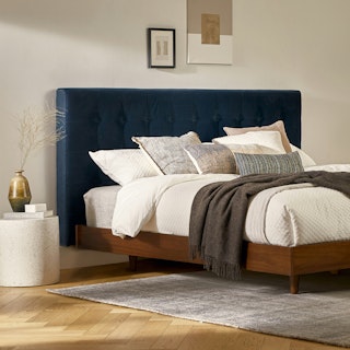 "Ooh là là" indeed... The Rattan Retreat Bundle features our boho-esque coastal Olalla headboard and fan-favorite Basi bed. The highest quality veneer, solid-plywood support slats, solid wood legs, and woven rattan bring a natural warmth to your bedroom — you know, that kind of lazy-sunny-day warmth you'd typically only find while vacationing in the tropics.