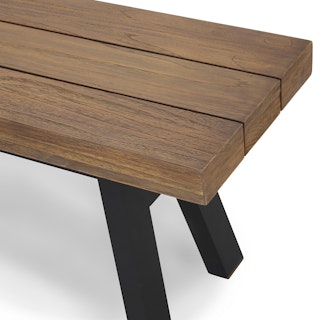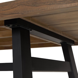 Pull up a seat. With powder-coated aluminum legs and a chunky slatted teak top, the Sardis Dining Set is sleek, sturdy, and supportive. What more could you ask for from a dining set? Plenty of space for all your VIP guests? No problem.