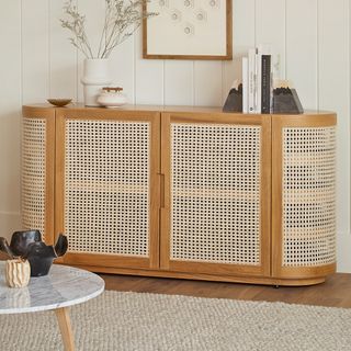 You can’t buy serenity. Or, can you? Ok, ok, we know making mindfulness claims for a cabinet is a little much, but there's something about the Candra that brings serious perma-vacation vibes to a space. Picture this: you discover that, between its two spacious cabinets, the Candra has more storage than you have stuff. If that's not serenity in a nutshell, we don't know what is.