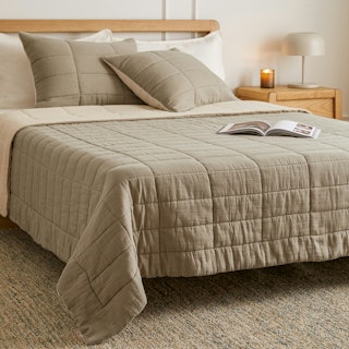Wrap it up. Woven from 100% cotton, the Leni Quilt is a lightweight cotton with a natural puckered texture and an airy, open weave. This super soft fabric is made from two layers of cotton gauze basted together to create a pillowy touch. For the quilt, we’ve layered multiple sheets together to build a blanket that feels like a hug from a cloud.