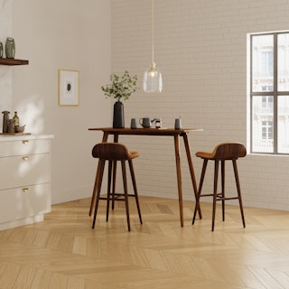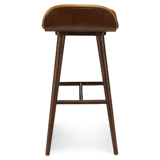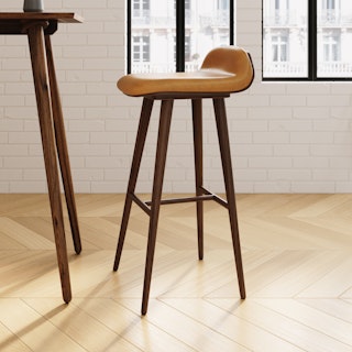 Turn your day around. A total mid-century modern dream seat, our Sede Bar Stool proves that good design always comes full circle. Tapered solid wood legs? Check. Bentwood seat? Absolutely. With a low, exposed veneer back, the Sede helps you lean into small talk or deep into conversation with confidence. Cheers to that.