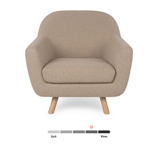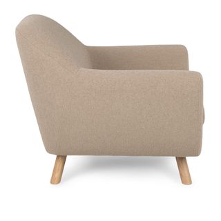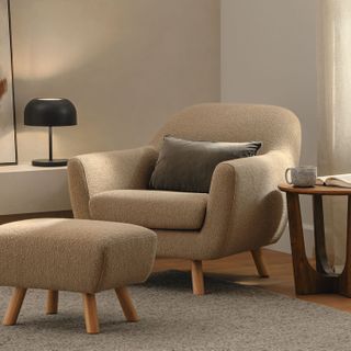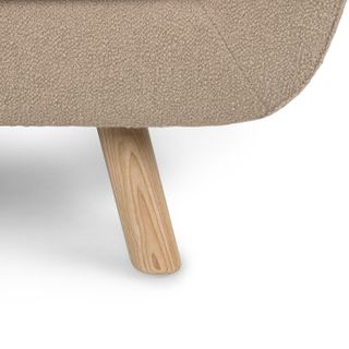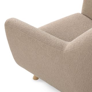 - Upholstered in a soft, non-absorptive bouclé fabric. Bouclé is an excellent choice for those who want an easy-to-care-for, style-forward lounge chair