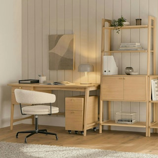 Love oak or walnut? How about mid-century design? Of course you do. This classic throuple is a mid-century dream. With its good looks and top-notch organizational skills, how could it not be? The Krossa file cabinet is the perfect buddy to the Krossa desk, more than capable of storing all your essential documents or carefully categorizing your midday snacks. This best-selling collection is designed to fit seamlessly together, showcasing fine craftsmanship and superior attention to detail with beautiful joinery and subtle curves. The Krossa isn't the kind to crave attention — but it will get some anyway.