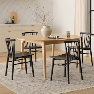 Love the black chairs for my natural wood table. It's confortable and beautiful. Already assemble.