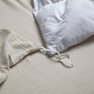 Named for its method, the Meso sheets and duvet undergo a process in which brushes are rubbed on the surface of 100% cotton to pull up the softest fibers of the yarn. Paired with the open weave and natural puckered texture of our Leni shams (also 100% cotton, not to brag), you'll count exactly two sheep before falling into a lovely, tempurature-regulated sleep.