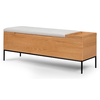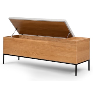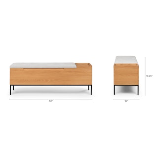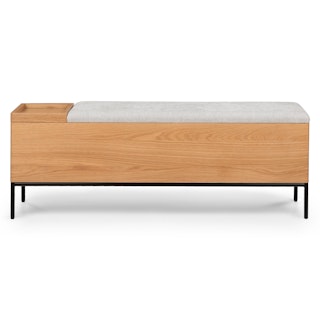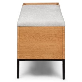 An instant entryway, the Thari Bench combines streamlined seating, ample shoe storage, and a practical side table in a sleek Scandinavian design. Made with veneered American White Oak, a durable fabric seat, and powder-coated iron legs, the Thari stands up to the task of the busiest spot in the house. Phone, keys, wallet and shoes? The Thari’s got space for everything.
