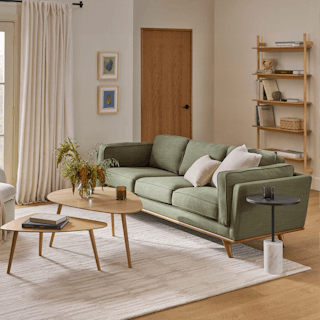 Sturdy, relaxed, accommodating — everything you love about our Timber sofa, but updated in a fan-favorite green linen.