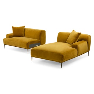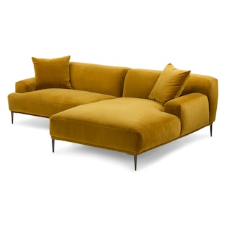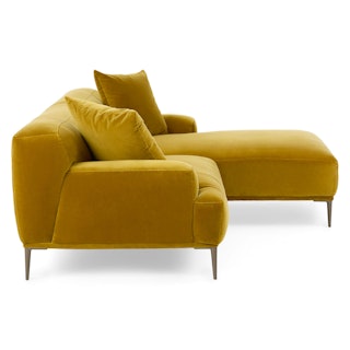 A generous serving. The Abisko Sectional offers a wide lounging chaise so you never have to restrict your relaxation. Made with plush velvet upholstery and titanium-finished legs, the Abisko sectional is here to make a lasting statement. Throw your hands behind your head and stretch out — this is your time to recline.