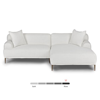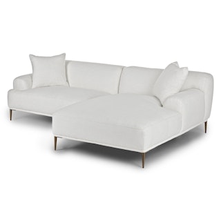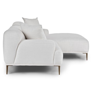 A generous serving. The Abisko right sectional offers a wide lounging chaise so you never have to restrict your relaxation. Throw your hands behind your head and stretch those tootsies out: this is your time to recline. Made with Quartz White upholstery and titanium-finished legs, the Abisko sectional is here to make a stylish statement.