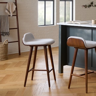 Turn your day around. A total mid-century modern dream seat, our Sede Counter Stool proves that good design always comes full circle. Tapered solid wood legs? Check. Bentwood seat? Absolutely. With a low, exposed veneer back, the Sede helps you lean into small talk or deep into conversation with confidence. Cheers to that.
