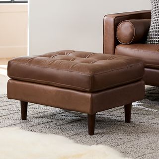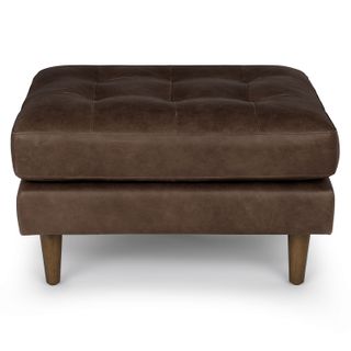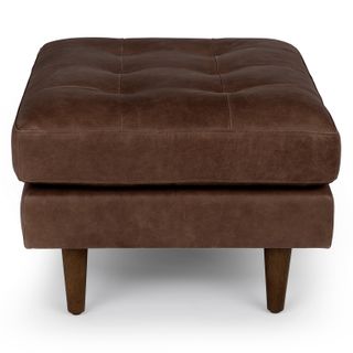 Sven 30" Tufted Leather Ottoman - Charme Chocolat