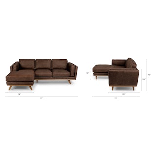 Timber 93" Leather Left Sectional - Charme Chocolat