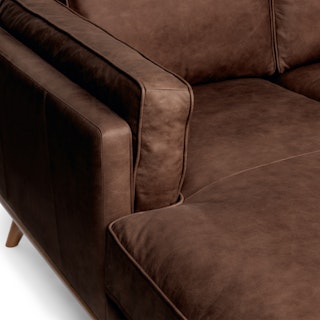 - Upholstered in Charme Leather, our full-aniline leather that’s smooth to the touch and untreated for a natural look