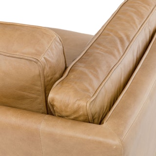 Made from solid wood, the sturdy corner-blocked frame is roomy enough for big families and big-time loungers. Smooth leather cushions make a soft landing for years to come.