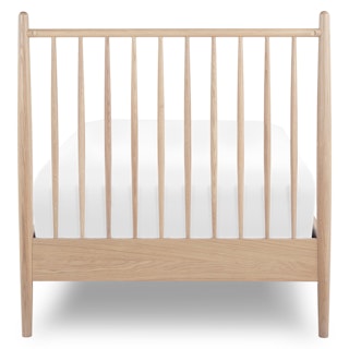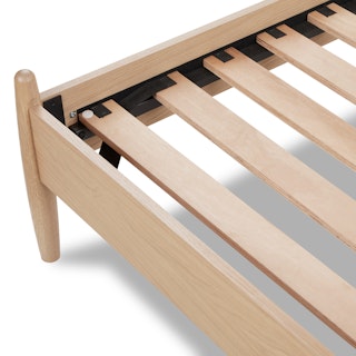 Simple pleasures. The Lenia bed takes notes from the Shaker school of design: tapered legs and spindles, solid and veneered white oak, concealed joinery, and an unadorned silhouette. The Lenia’s quiet beauty will take center stage in your bedroom. Sweet dreams.