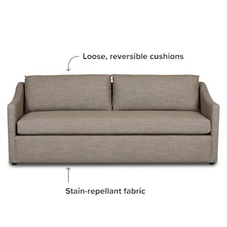 A minimal look with maximum impact. The Landry marries laid back comfort with elegant details to produce a sofa that is as comfortable hosting movie night as it is a cocktail hour. Sloping sleigh-style arms and clean straight lines make it simple to pair this sofa with many different styles. Try it with a warm white backdrop, against a wildly patterned rug, or draped with your favorite blanket. The Landry is easygoing style at its best.