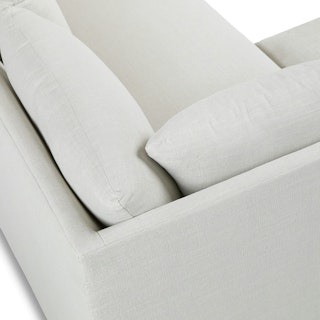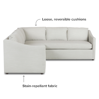 A minimal look with maximum impact… and maximum seating area. The Landry marries laid back comfort with elegant details to produce a sectional that is as comfortable hosting movie night as it is a cocktail hour. Sloping sleigh-style arms and clean straight lines make it simple to pair this sectional with many different styles. Try it with a warm white backdrop, against a wildly patterned rug, or draped with your favorite blanket. The Landry is easygoing style at its best.