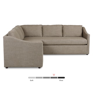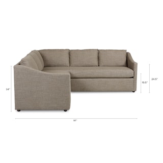 A minimal look with maximum impact… and maximum seating area. The Landry marries laid back comfort with elegant details to produce a sectional that is as comfortable hosting movie night as it is a cocktail hour. Sloping sleigh-style arms and clean straight lines make it simple to pair this sectional with many different styles. Try it with a warm white backdrop, against a wildly patterned rug, or draped with your favorite blanket. The Landry is easygoing style at its best.
