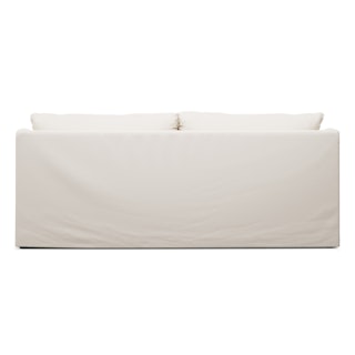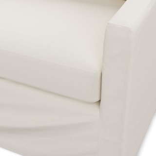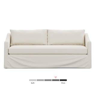 Great slipcover sofa! I love the style of it with the sloped arms and linen look fabric. And the best part, is that the slipcover can be removed for easy washing!