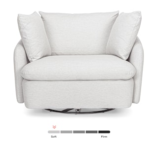 Cloud kingdom, population: you. The Leigh Grand swivel chair is the bigger brother, boasting an extra 14" in seat depth alone — nap central, we know. With thoughtful details that make it the perfect place to put your feet up and read/watch a show/stare into the middle distance. Upholstered with stain-resistant LifeGuard fabric, the Leigh is here to help you rest easy.