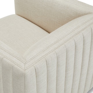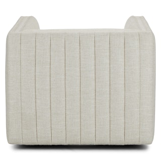Channeled linen-blend upholstery, high armrests, clean lines. . . what's another word for elegant? Regal? Sophisticated? Just think of the Verena Chair as embodying all of the "elegant" synonyms you can think of. And this isn't just any seat. No, no. With a hidden swivel base, the Verena is so much more — 360 degrees more, to be exact.