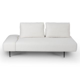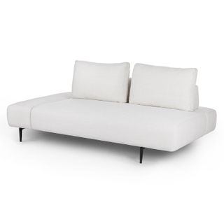 The Divan collection features moveable back pillows that can be configured any way you like. A welcoming sofa when company’s over then transforms into a comfy chaise for solo late-night lounging. The wood frame, powder-coated metal legs, and mixed feather padding come together to create a sleek, multi-purpose piece.