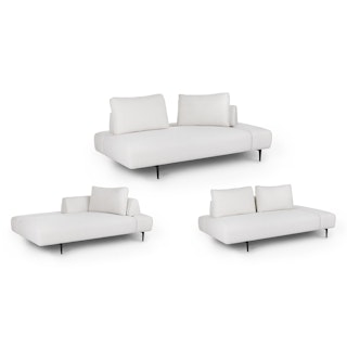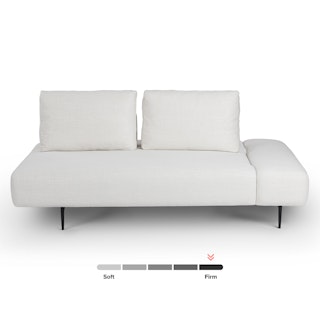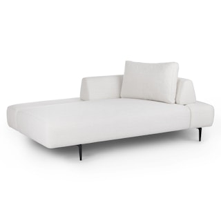 The Divan collection features moveable back pillows that can be configured any way you like. A welcoming sofa when company’s over then transforms into a comfy chaise for solo late-night lounging. The wood frame, powder-coated metal legs, and mixed feather padding come together to create a sleek, multi-purpose piece.