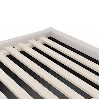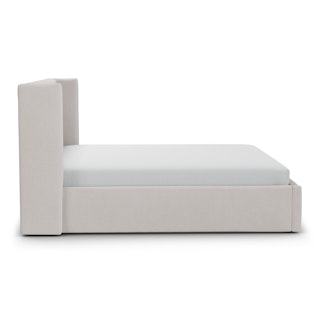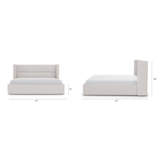 The CEO of dreamland. This generous wing-backed headboard has some pretty high expectations of your REM cycle. Upholstered with a linen-blend and padded with dense foam, the Calabri bed also features a generous upholstered base. Talk about an elevated aesthetic.