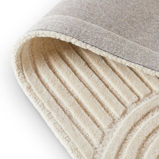 Caution: curves ahead. The Clem rug features a hand-loomed arch pattern in a soothing, tonal colorway. Made from 100% wool, the Clem is soft underfoot and brings cozy warmth to a room.