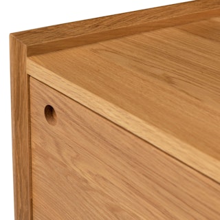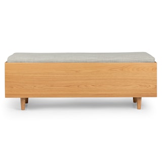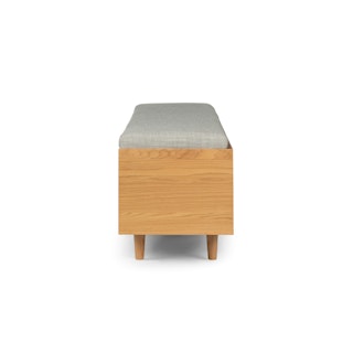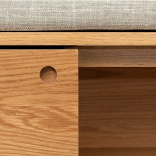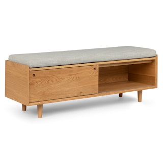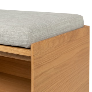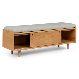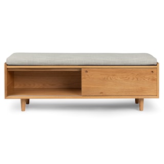 Put it away, put it away, put it away, now. The Nederin bench is the beautiful workhorse that your foyer or mudroom deserves. A broad storage compartment is accessed by a sliding solid wood panel so you can show-off your shoe collection at your leisure. Topped with a cozy foam cushion, the Nederin bench can also act as extra seating, in a pinch.