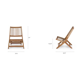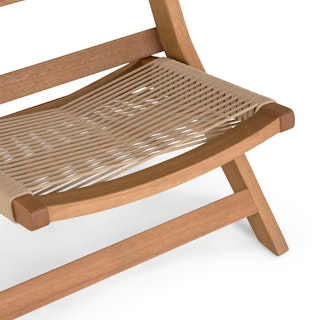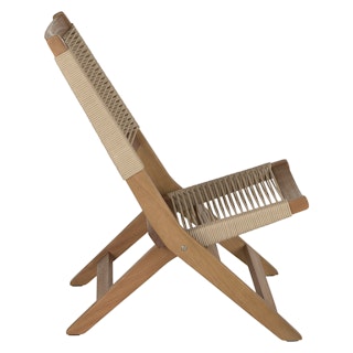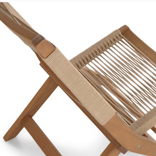 Shop Similar ItemsIt’s like a hammock, but it’s actually a chair. And like a hammock, it folds up and tucks away. That’s right folks, it’s a folding lounge chair. Wide enough to accommodate your morning cross-legged meditation, but light enough to fold up and store. Built from solid eucalyptus, the Santo is strung with sturdy polypropylene ropes for a springy, comfortable seat.