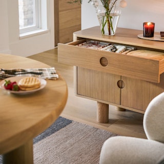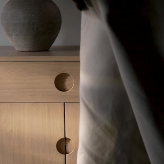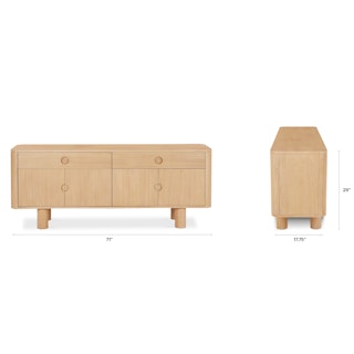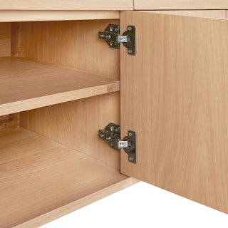 A simple form that's more than the sum of its parts, the Adel sideboard is boldly sculptural, but not overbearing. With solid wood edges and discreet recessed pulls. The Adel's legs are hollow, making it easy to move.