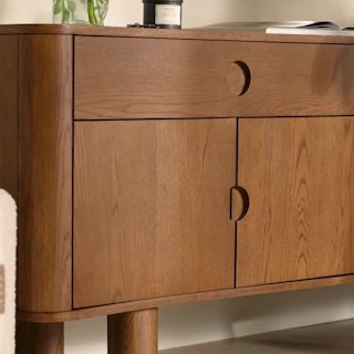 A simple form that's more than the sum of its parts, the Adel sideboard is boldly sculptural, but not overbearing. With solid wood edges and discreet recessed pulls. The Adel's legs are hollow, making it easy to move.