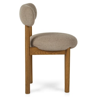 The best of both worlds: the Munk chair has a strong, solid foundation of solid wood, and is set apart by a round tuffet of bouclé and foam filling. A slightly curved backrest makes it restful to relax at the dinner table, or your desk, or you know... in your accent chair location.