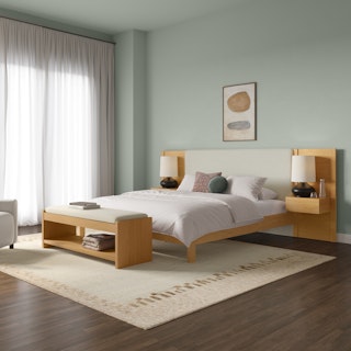 Thumbnail of Cassie King Upholstered Bed with Nightstands - Oak and Ivory Chenille provided by Monica - 1 of 0.