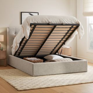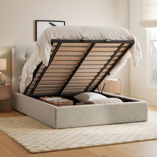 You have discerning taste, but you also have a lot of stuff. A lot of nice, seasonally-specific sheets. A lot of unread books. The Sven storage bed has that iconic tufting AND roomy under-bed storage space. Pull one of the upholstered straps at the foot of the bed and marvel as the hydraulic-assisted mechanism opens to reveal an entire bed's worth of space for secret storage.