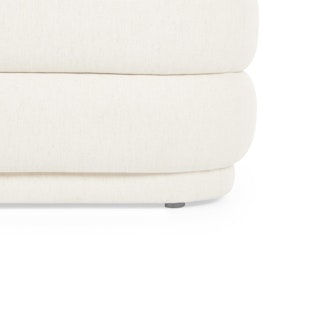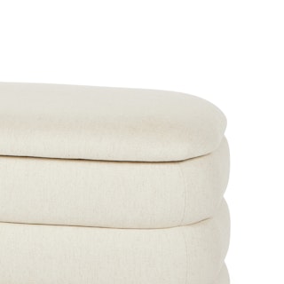 Contemporary yet retro. With its playful shape and smooth cotton-blend upholstery, the Rolph seamlessly blends mid-century design with a sprinkle of glam. Boasting ample storage space with a soft-close lid, you get all the modern amenities but with a touch of vintage charm.