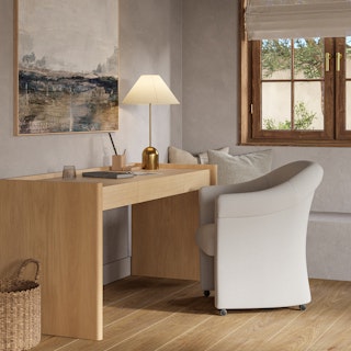 This lamp is stunning. It is the perfect understated statement lamp. The gold finish is perfect (not too yellow, not too champagne) and the texture on the shade... More