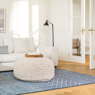 Large and in charge. With its softly speckled wool pile woven into chunky braids, dense polyfill, and tightly woven top for comfortable seating, the Hira pouf confidently transitions from cozy pouf to inviting seating to amiable room accent.