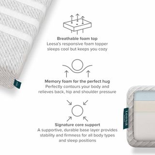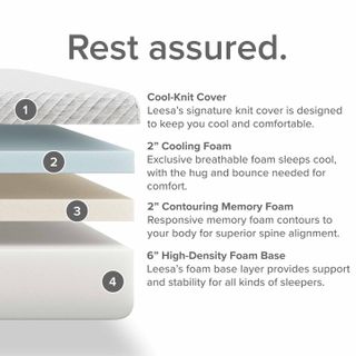 Get a better night's sleep with Leesa's long-lasting support and cooling comfort, while the classic, unadorned silhouette of the Lenia bed's slatted bed frame provides superior airflow. Whatever your sleeping position, rest assured you'll be evenly supported — no matter how much you wriggle in the night.